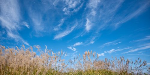 先月訪れたのは9月19日で、ススキはその時よりかなり増えていました。今日も快晴で写真を撮影するにはとってもいい条件です。