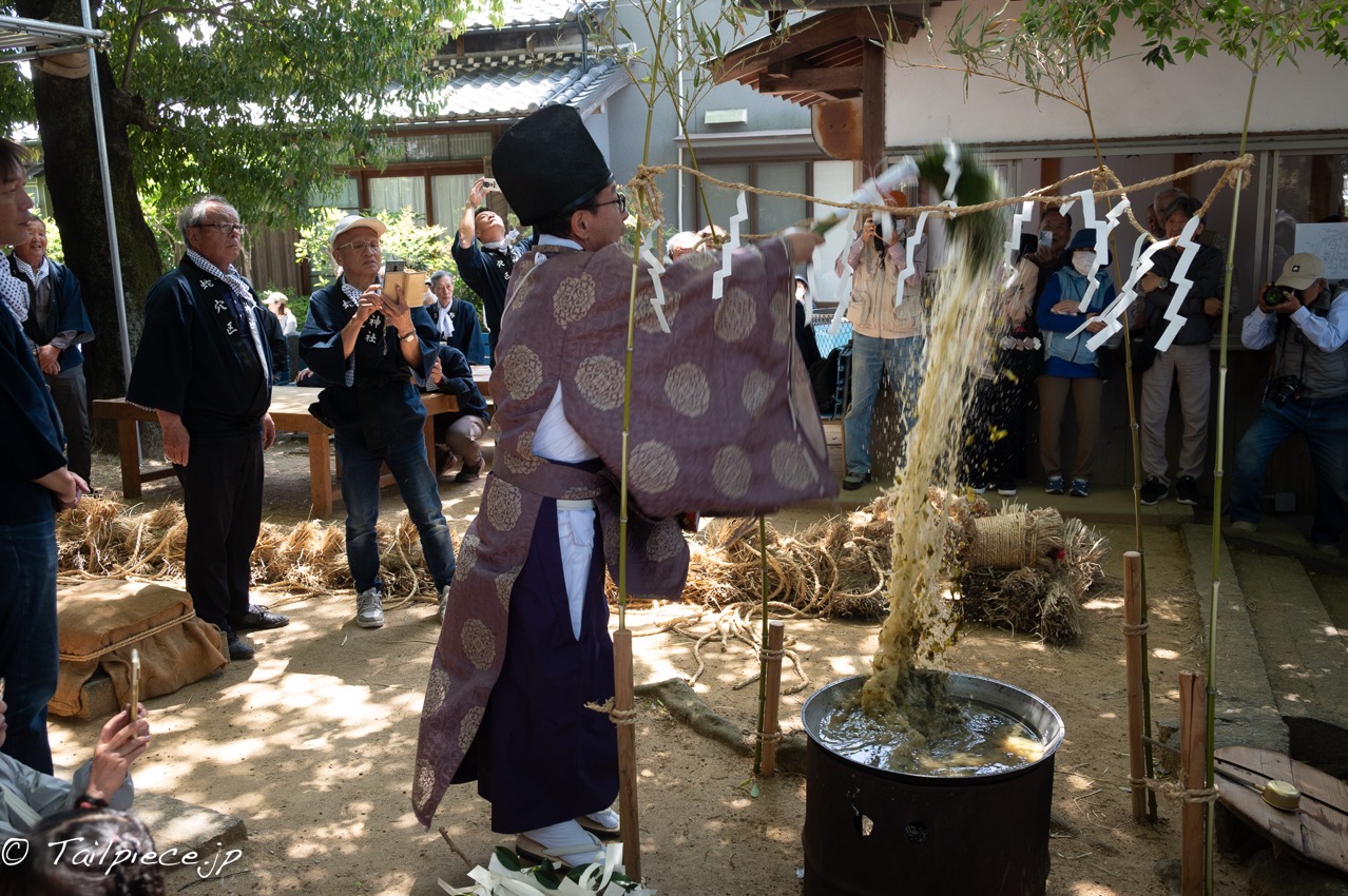 御所市野口神社の汁掛け祭、宇陀市白山神社のオンダ祭り
