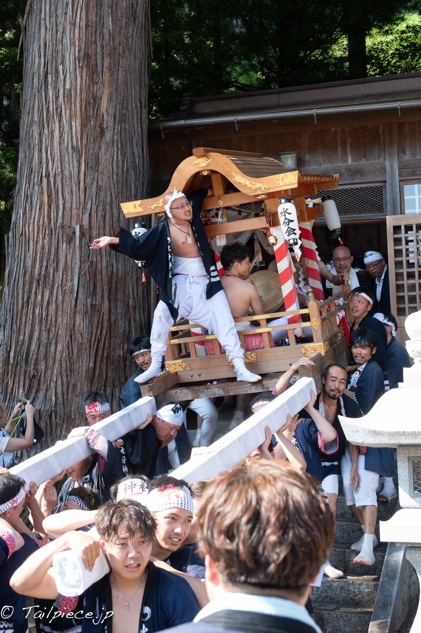 境内に入ると神輿は境内を練り回して拝殿への階段を駆け上がり、担ぎ手も観客も最高潮にヒートアップしました。