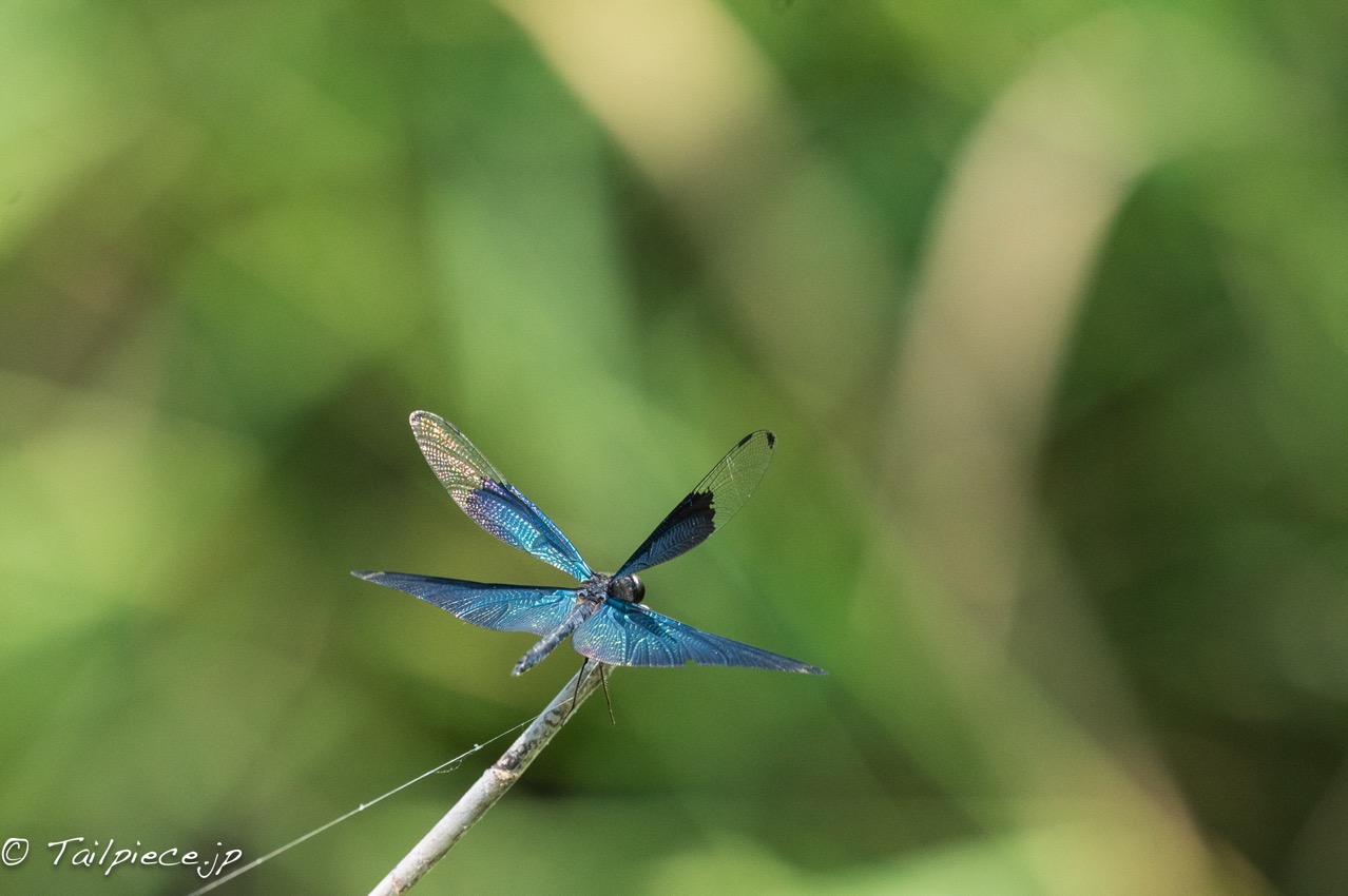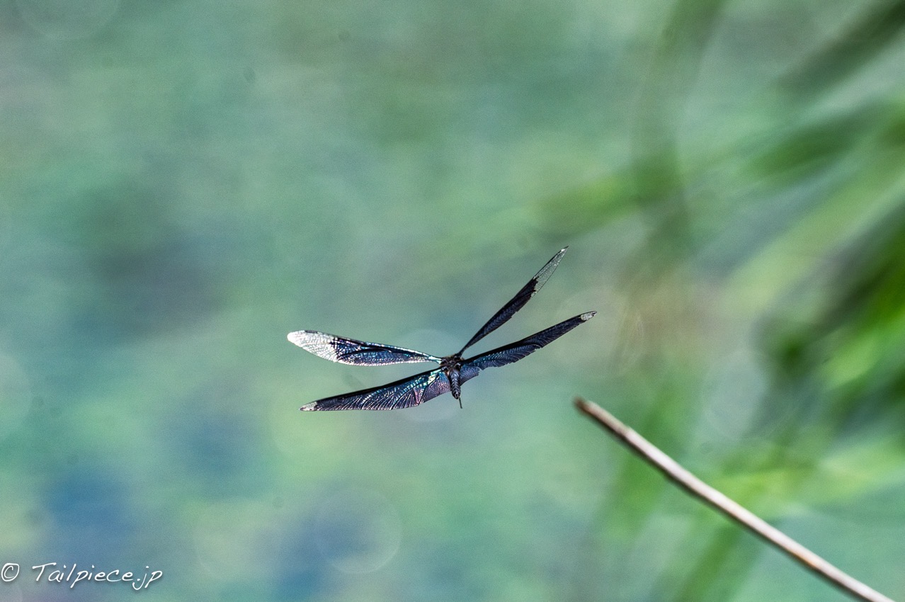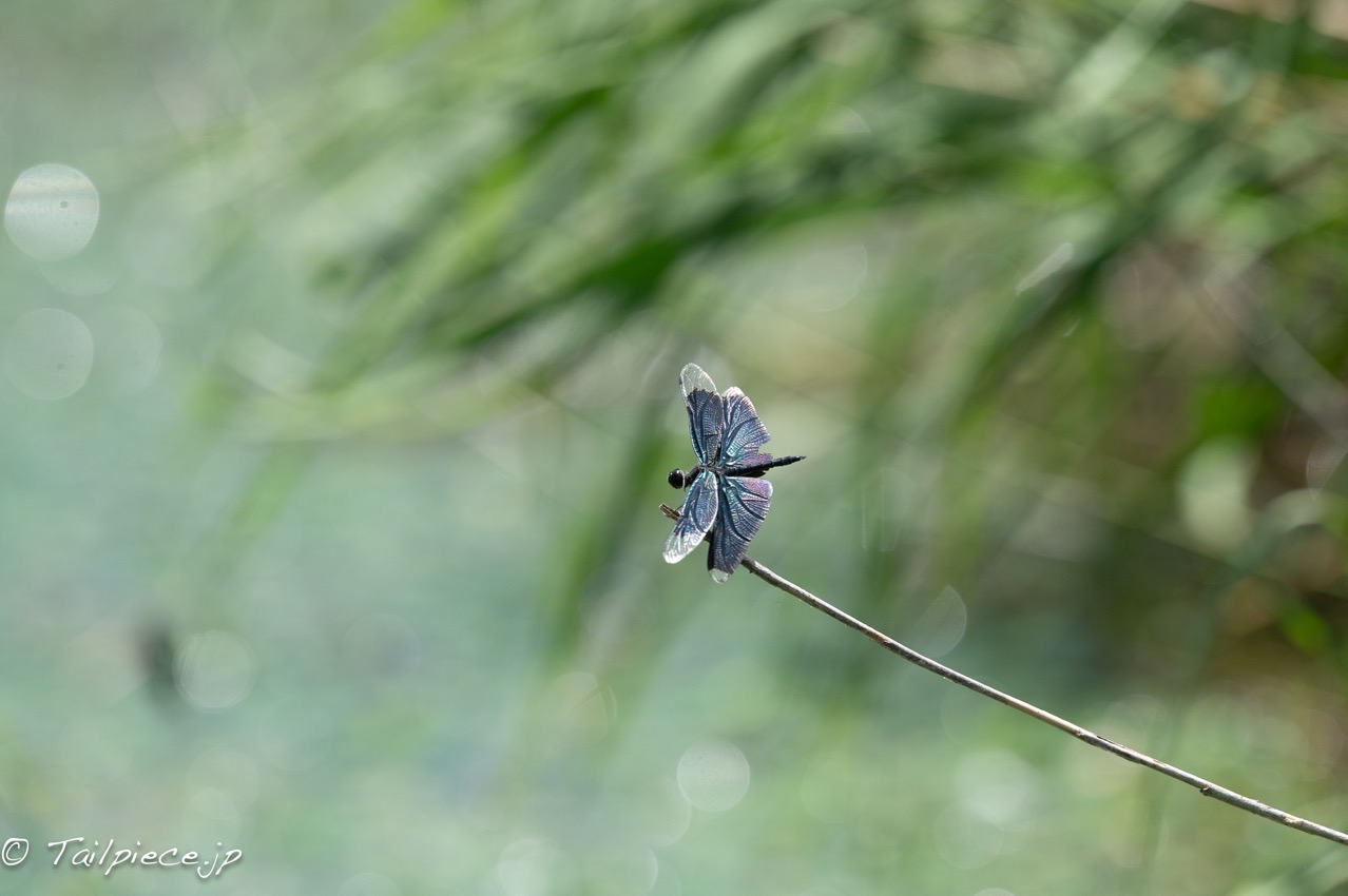 こうやって見るとなんと美しい翅をもっているのでしょうか。構造色というのですか。全体的に金属光沢を持っていて、光の当たる角度によって羽のいろが青紫色や緑色に輝きます。