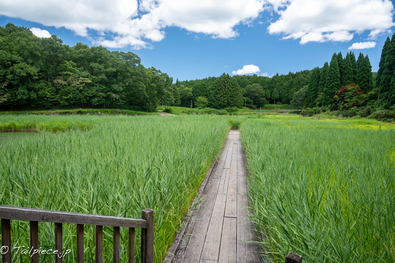 龍王ヶ渕の木張りの遊歩道を進みます。両脇は葦が茂っていて向こうから夏休みの麦わら帽子の少年が虫取りの網を持って出てきそうな雰囲気です。