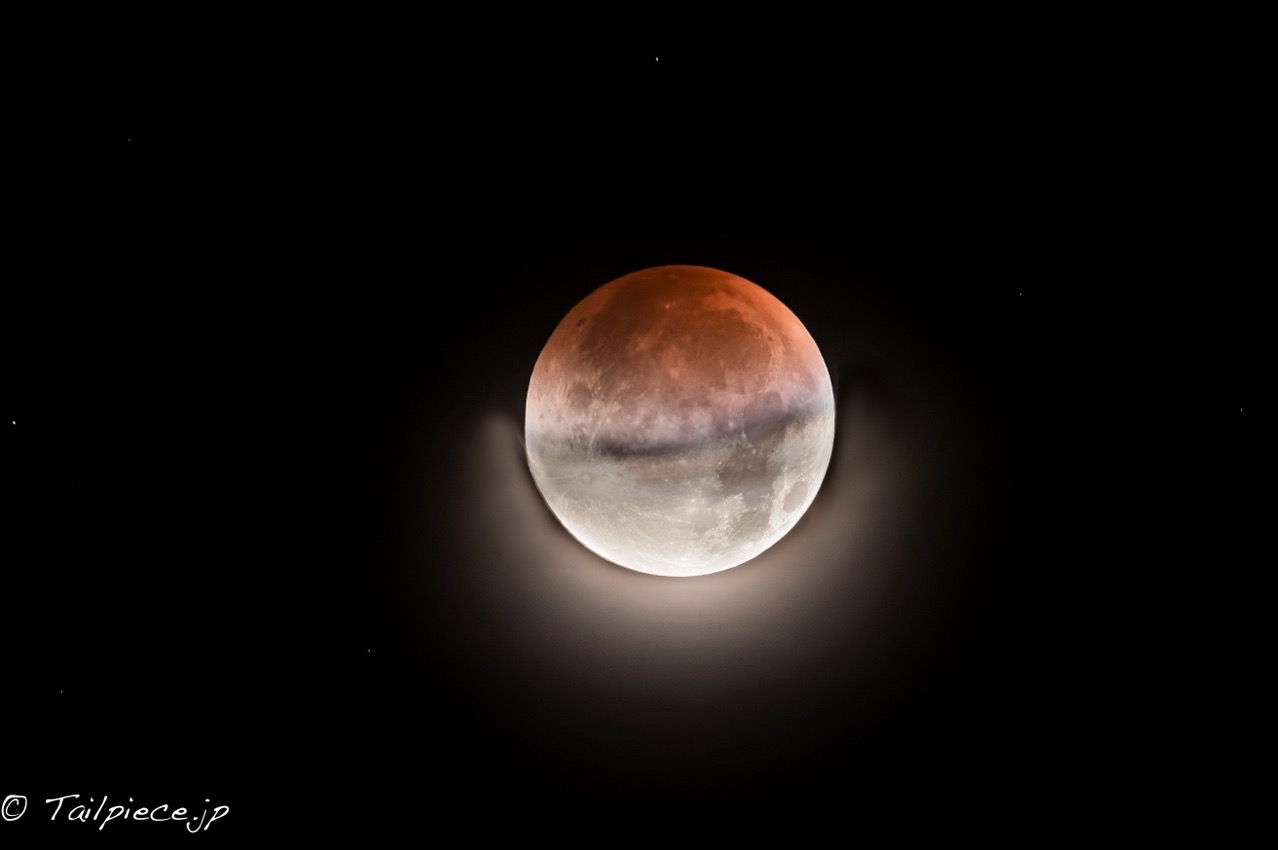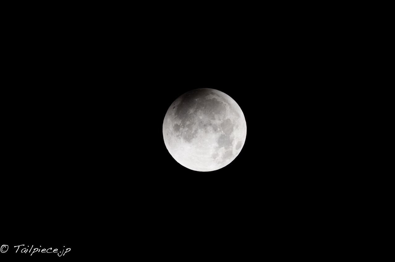 1時間ほど経過する2:30ごろに完全に月が地球の影に入り皆既となりました。月面は暗いのですがカメラの露出を上げてみると赤銅色(しゃくどういろ)に輝いているのがはっきりと判ります。