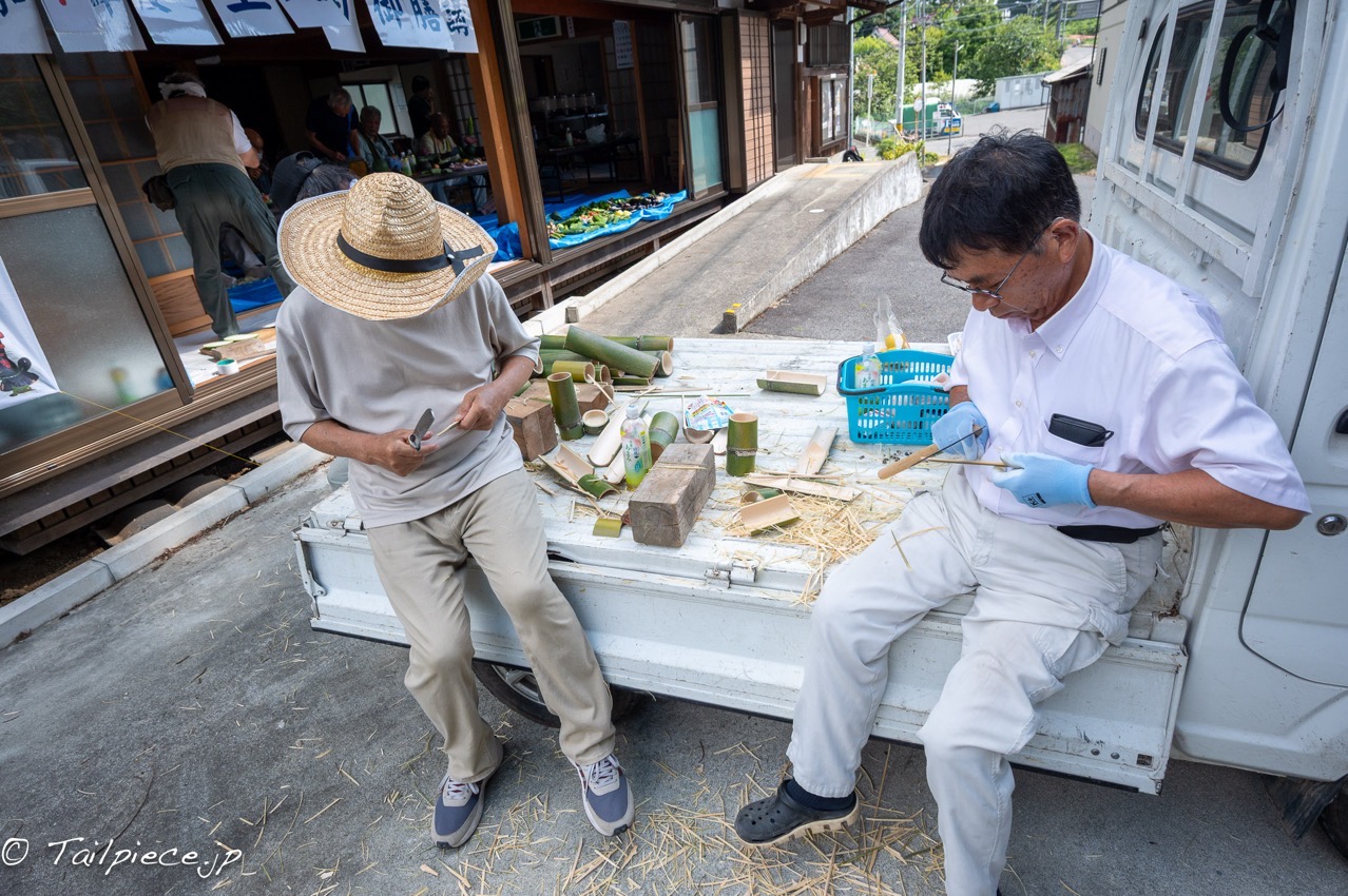 若手は御膳作りには入らず、御膳作りで使う竹ひごを作ります。