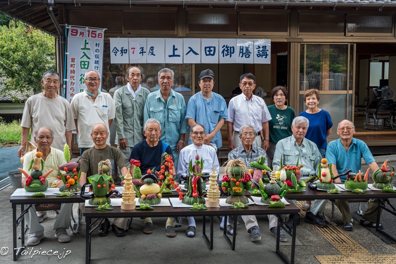 天理市福住町上入田(かみにゅうだ)で行われた御膳作りを見てきました。以前山添村で桜を撮影しているときにお出会いしたかたが上入田の村役だそうで、9月の15日に行う御膳作りを見においでとお誘いされていました。