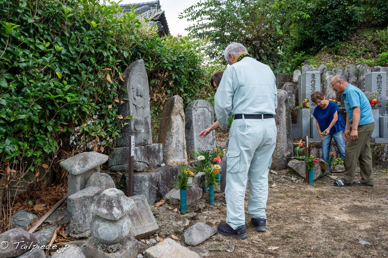 集会場前の石仏群にも御膳を供えて念仏が唱えられました。