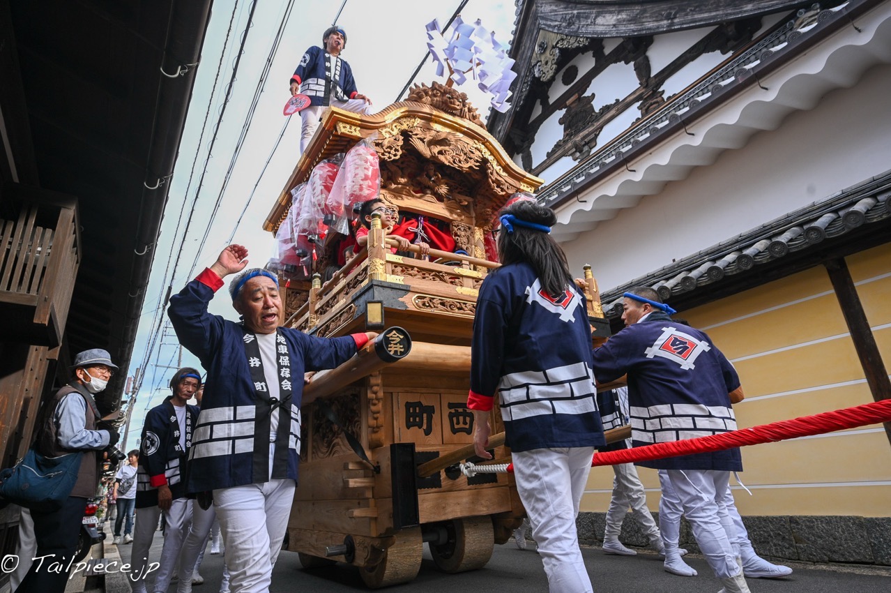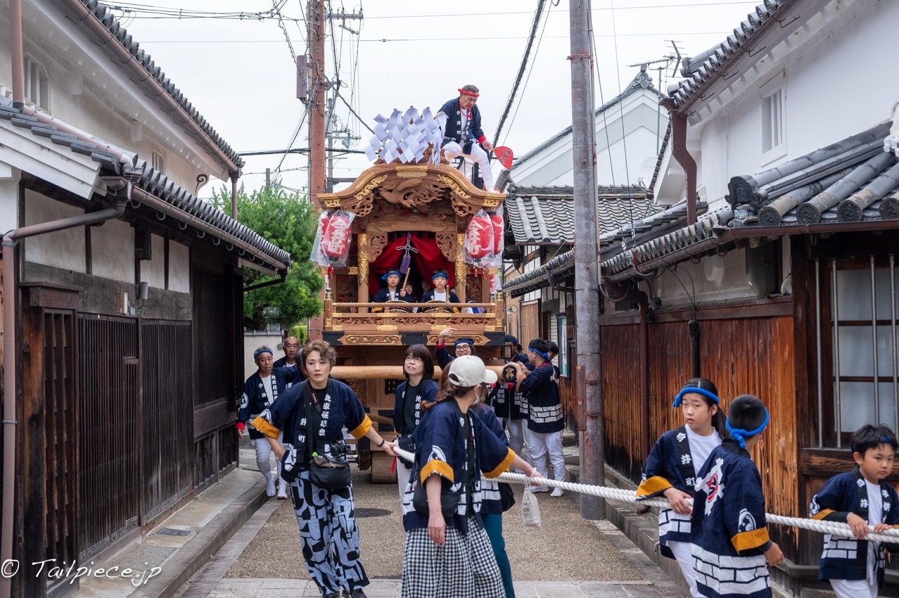 昔の景観を守っている町並みなので、地車が道幅いっぱいとなり、家の塀に接触したり、電線に掛からないか気になります。