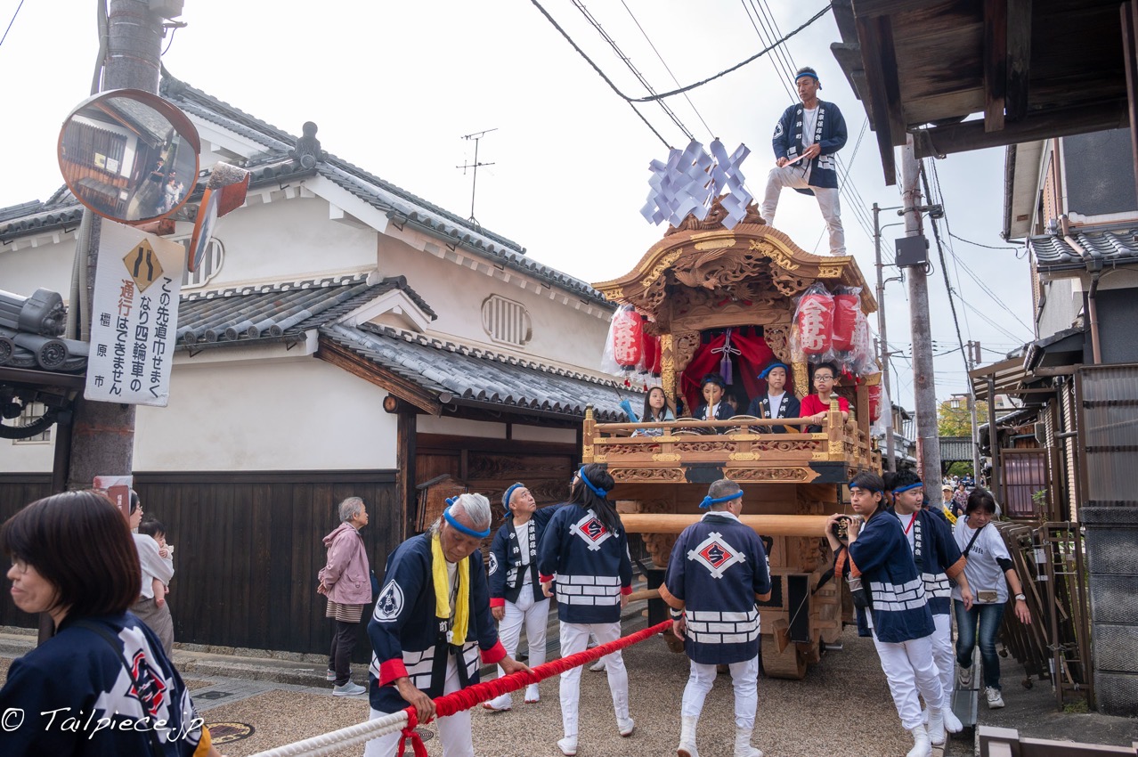 地車が春日大社に戻ったのを確認して、確か地車は2台だったはずと思い出して、もう1台の地車を探しました。今井町はとても広い範囲なのでなかなか出会うことができなかったのですが、街の路地を曲がったところで出会うことができました。