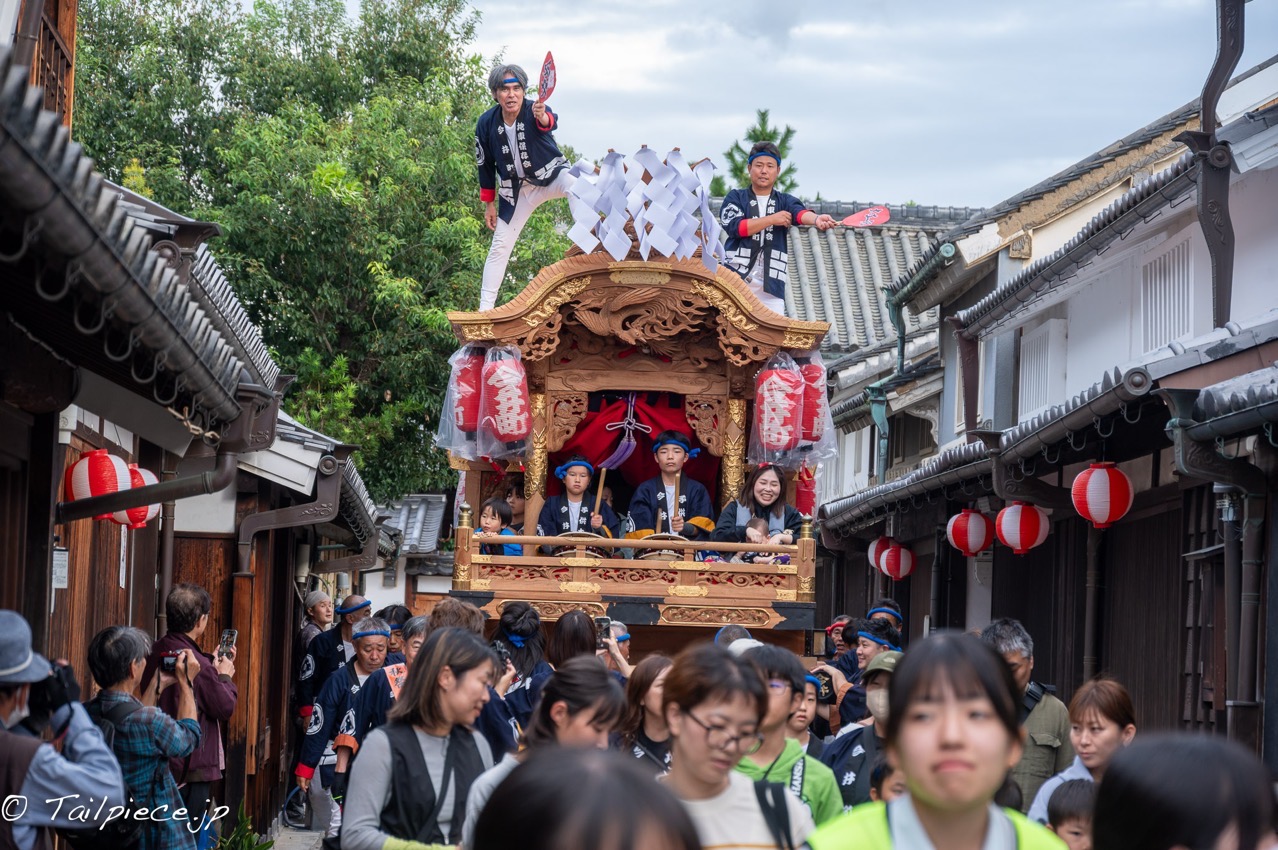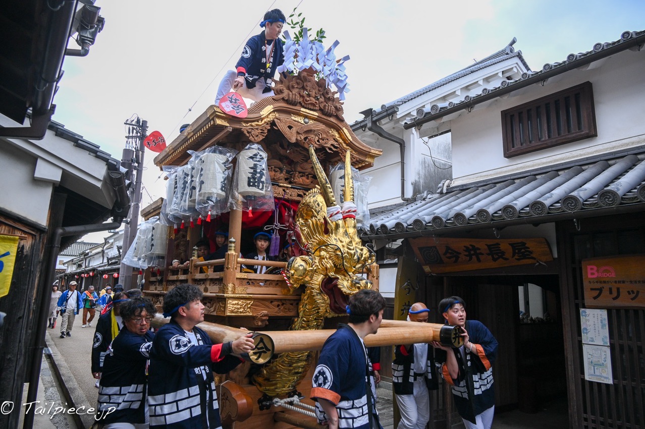 歴史ある今井町の美しい町並みを縫って2台の地車(だんじり)が曳行されます。
