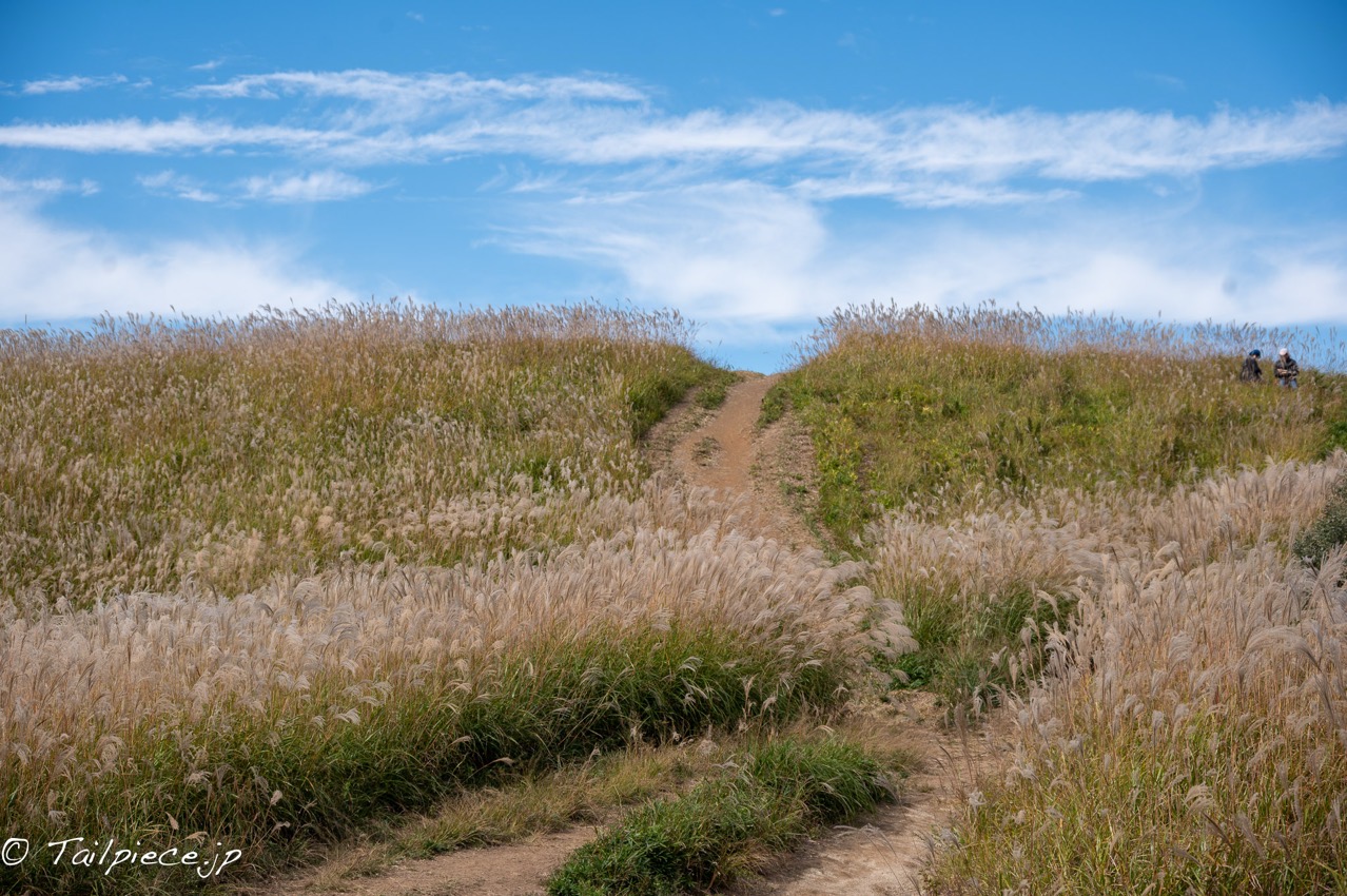ススキに囲まれたハイキング道を好き勝手なペースで歩いていきます。道が整備されているので迷う心配もなく山歩きを楽しめます。