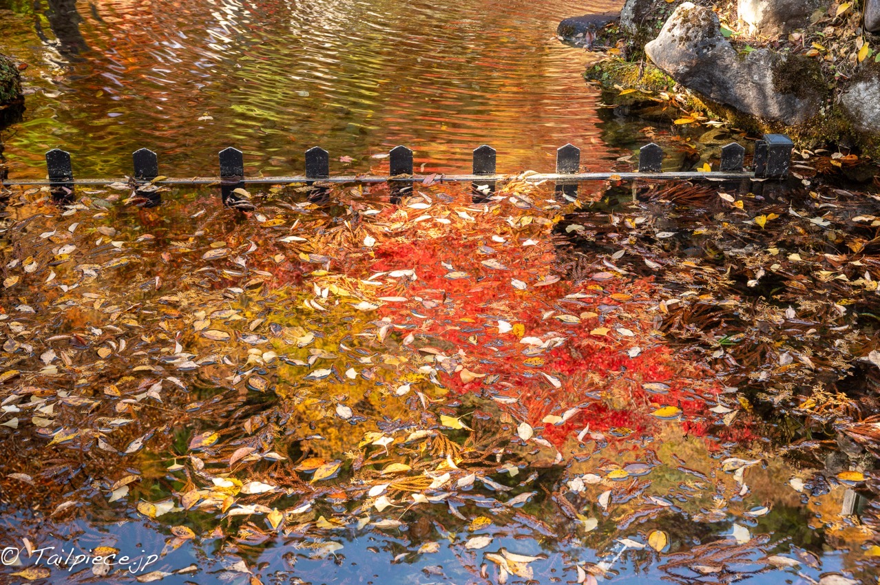 天川村は水の宝庫です。村の各所にきれいに水があります。龍泉寺の境内もきれいな水がたっぷり流れていて水面に紅葉が映えています。